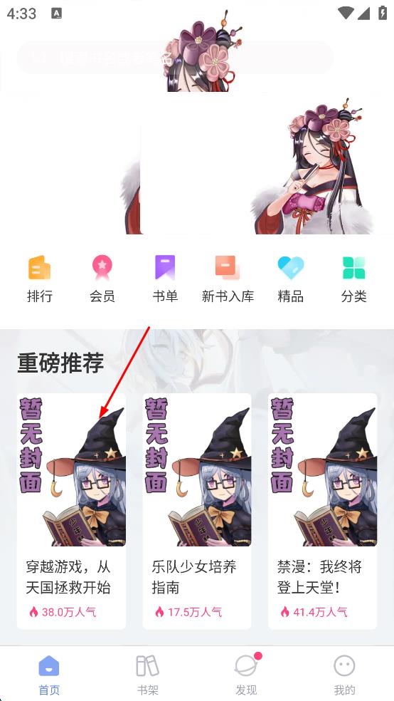 2、在APP主界面的重磅推薦區(qū)域,選擇想要閱讀的小說,點(diǎn)擊進(jìn)入該小說詳情頁面。