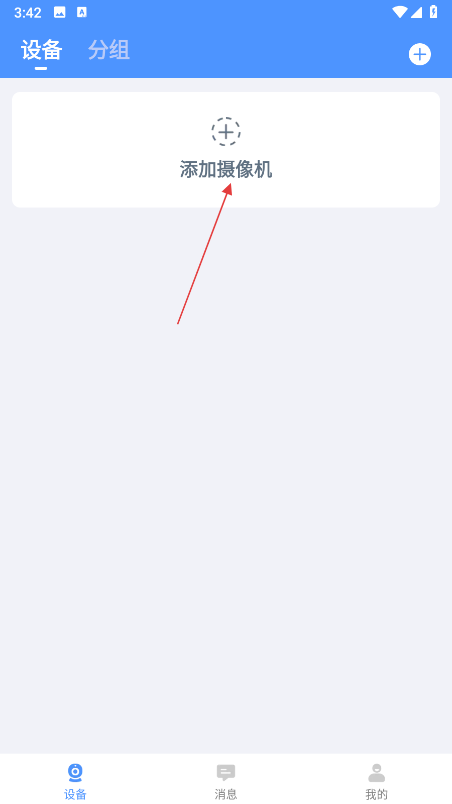 1、打開云視云APP,在“設(shè)備”頁面點擊添加攝像機(jī)按鈕。