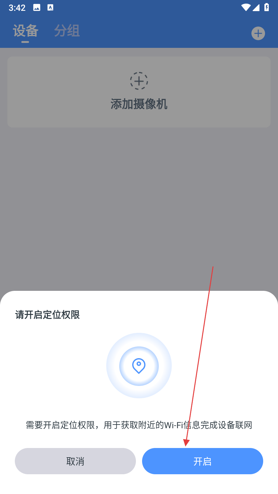 2、當(dāng)彈出請開啟定位權(quán)限提示框時,點擊開啟按鈕。
