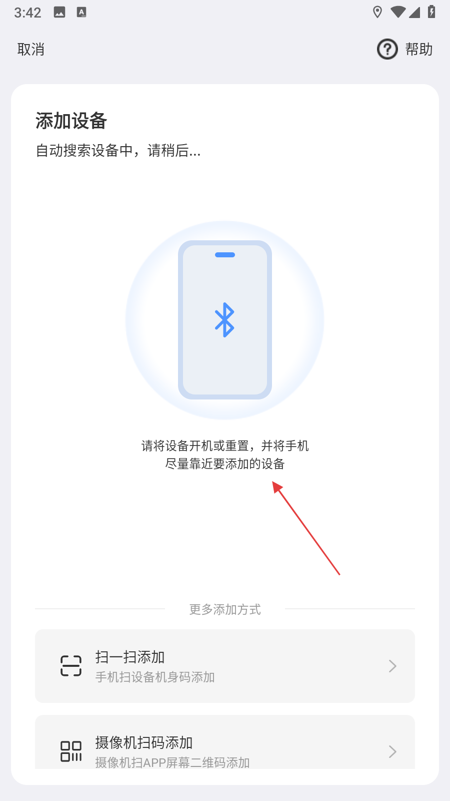 4、若自動搜索未找到設(shè)備,可點擊更多添加方式,選擇掃一掃添加,攝像機(jī)掃碼添加等方式。