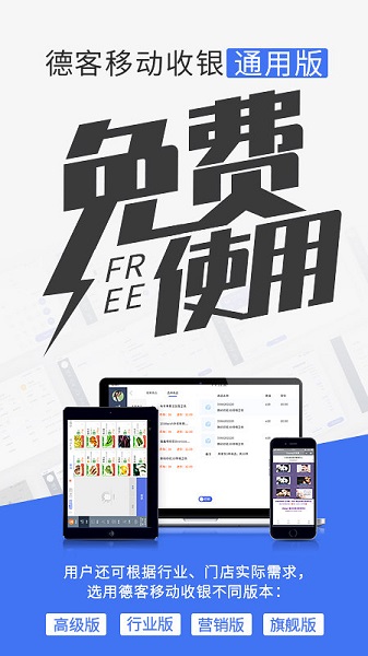 4、用戶亦可根據(jù)行業(yè)、門店具體經(jīng)營需求,選用德客移動收銀不同版本:高級版、行業(yè)版、營銷版、旗艦版