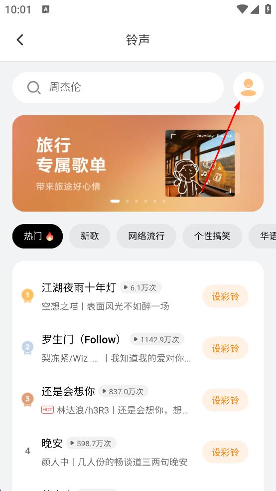 2、在我的頁面點擊火爆鈴聲區(qū)域,進入鈴聲相關界面。