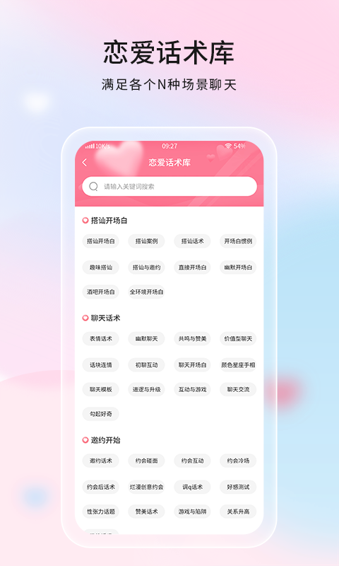 戀愛話術、情景解讀,只要搜一搜,輸入你想找的聊天內容,只要直接復制粘貼就能把妹子追到手。