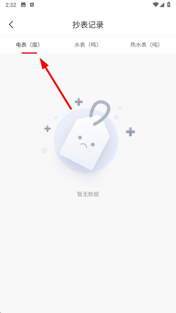 3、在抄表記錄頁面,點擊電表選項卡,查看電表的讀數(shù)情況。