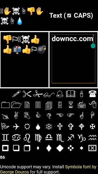 g語翻譯器中文版為你提供了一個(gè)翻譯傳說之下中奇怪語言的工具,亂七八糟的表情會翻譯成對應(yīng)的英文字母和標(biāo)點(diǎn)。這個(gè)翻譯也是雙向的,為你提供一個(gè)更加有趣的內(nèi)容。歡迎下載!