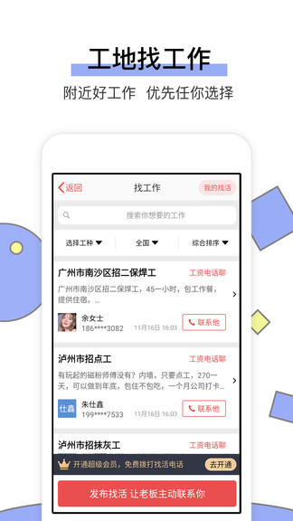 工地找老鄉(xiāng):廣泛建筑人脈,提供全國建筑工友圈,讓您接活招工輕松;