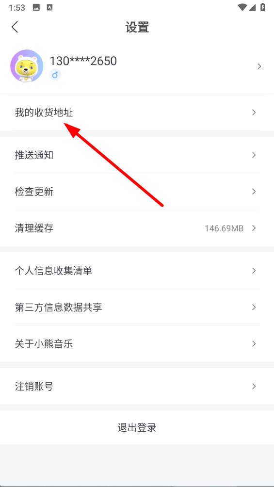 3、在設(shè)置頁面里,找到并點(diǎn)擊我的收貨地址選項(xiàng),進(jìn)入地址管理界面。