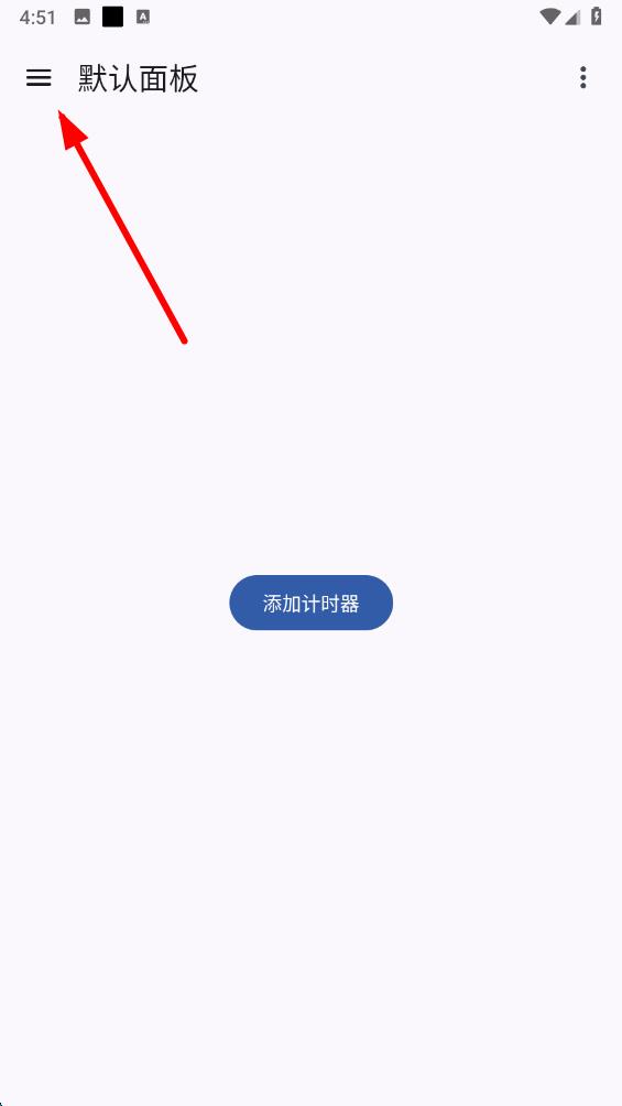 1、打開計時器app,點擊左上角的三條橫線圖標,展開側邊欄菜單。