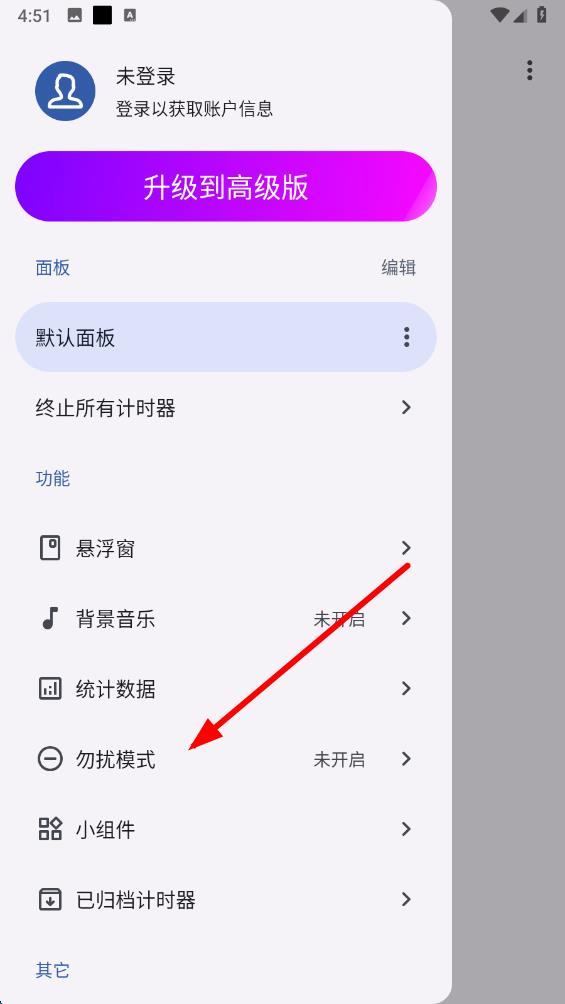 2、在側邊欄菜單中,找到并點擊勿擾模式選項,進入勿擾模式設置頁面。