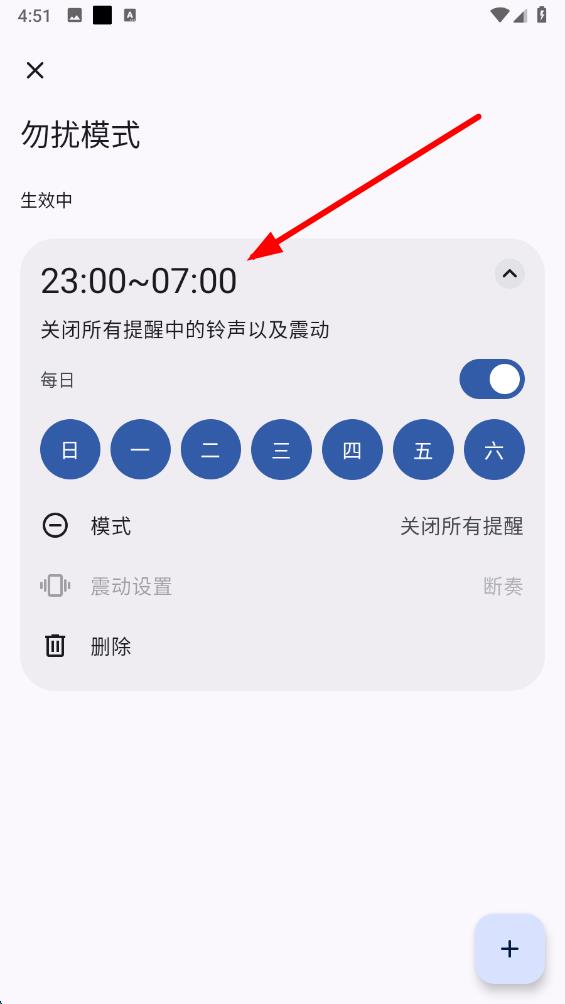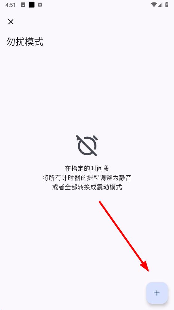 3、在勿擾模式設置頁面,點擊右下角的按鈕,添加新的勿擾時間段。