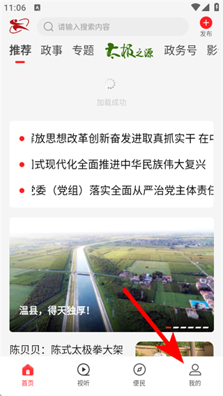 1、進(jìn)入云上溫縣app的首頁后,點擊底部我的,進(jìn)入個人的頁面。