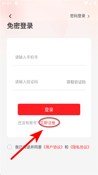 3、然后需要在登錄頁面點擊立即注冊,進(jìn)入到注冊的頁面。