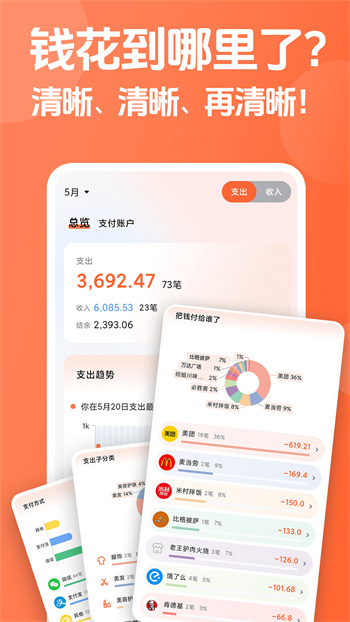 4、每月收入和支出數(shù)據(jù)明細(xì),屬于您掌上的財(cái)務(wù)小能手,更好的管理您的每一筆資金。