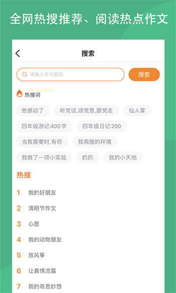 1、全新的搜索功能,可以通過輸入作文題目即可快捷查找;