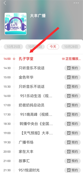 2、在聽廣播板塊頁面,點(diǎn)擊目標(biāo)廣播,進(jìn)入廣播節(jié)目列表界面。