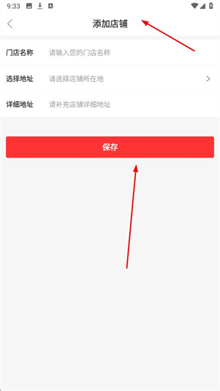 2、選擇關(guān)聯(lián)店鋪,在添加店鋪頁(yè)面輸入門店名稱、選擇地址、補(bǔ)充詳細(xì)地址,點(diǎn)擊保存。