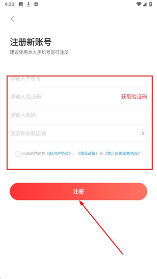 3、輸入手機(jī)號(hào),填入驗(yàn)證碼,設(shè)置密碼,,勾選用戶協(xié)議、點(diǎn)擊注冊(cè),完成賬號(hào)注冊(cè)流程。