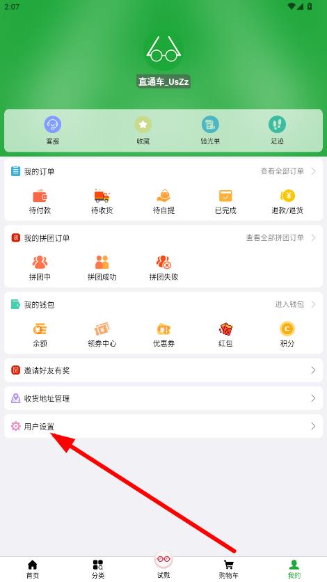 2、在個(gè)人中心頁(yè)面,點(diǎn)擊用戶設(shè)置選項(xiàng),進(jìn)入設(shè)置界面。