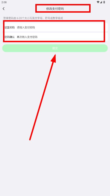 4、在支付密碼修改頁(yè)面,依次輸入要設(shè)置的支付密碼以及確認(rèn)密碼,輸入完成后點(diǎn)擊提交,即可完成支付密碼的修改。