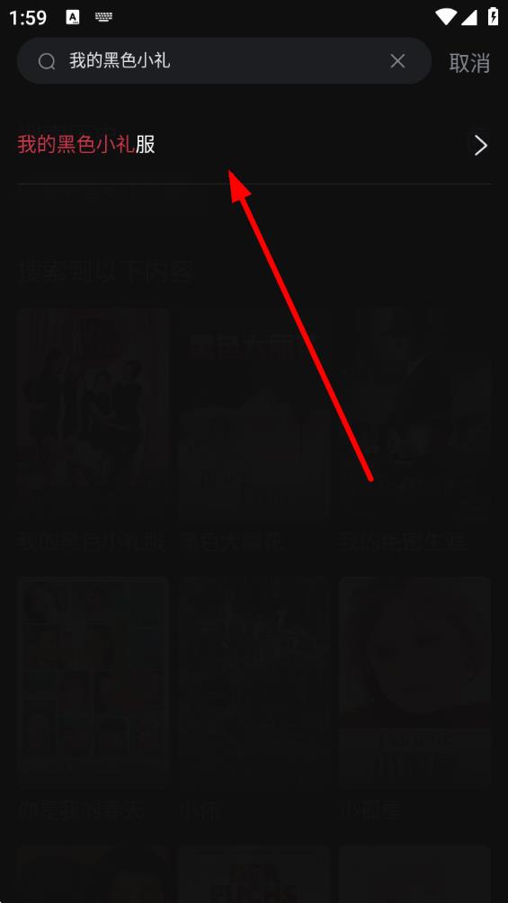 3、在輸入框中輸入你想要查找的電影名稱關(guān)鍵詞,比如我的黑色小禮服,點(diǎn)擊對(duì)應(yīng)的電影條目,就能查看該電影資源并進(jìn)行播放。