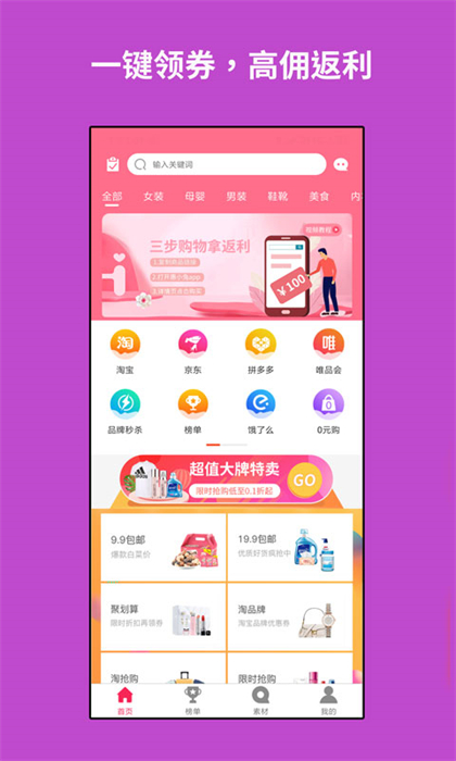 3、整天推送福利商品,任何適合都可以獲取大額優(yōu)惠券