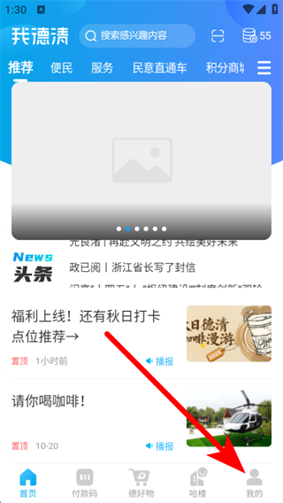 1、打開我德清APP首頁,點擊底部我的,進入個人的頁面。