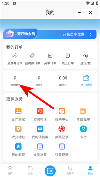 3、在商城的頁面,需要點擊我的,找到并點擊共享錢包入口。