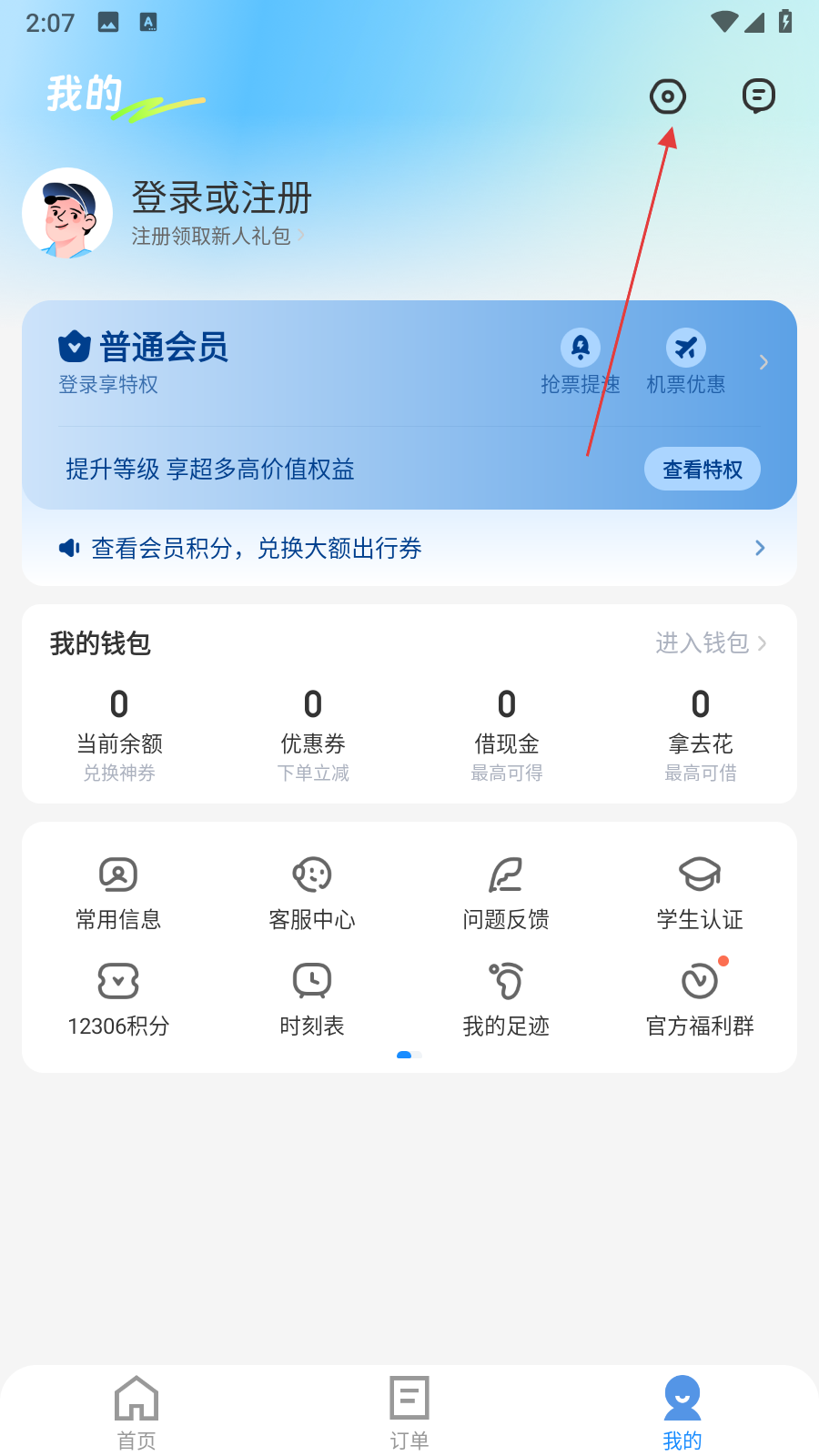 1、打開智行旅行APP,進(jìn)入個(gè)人頁面,點(diǎn)擊右上角的設(shè)置圖標(biāo)。
