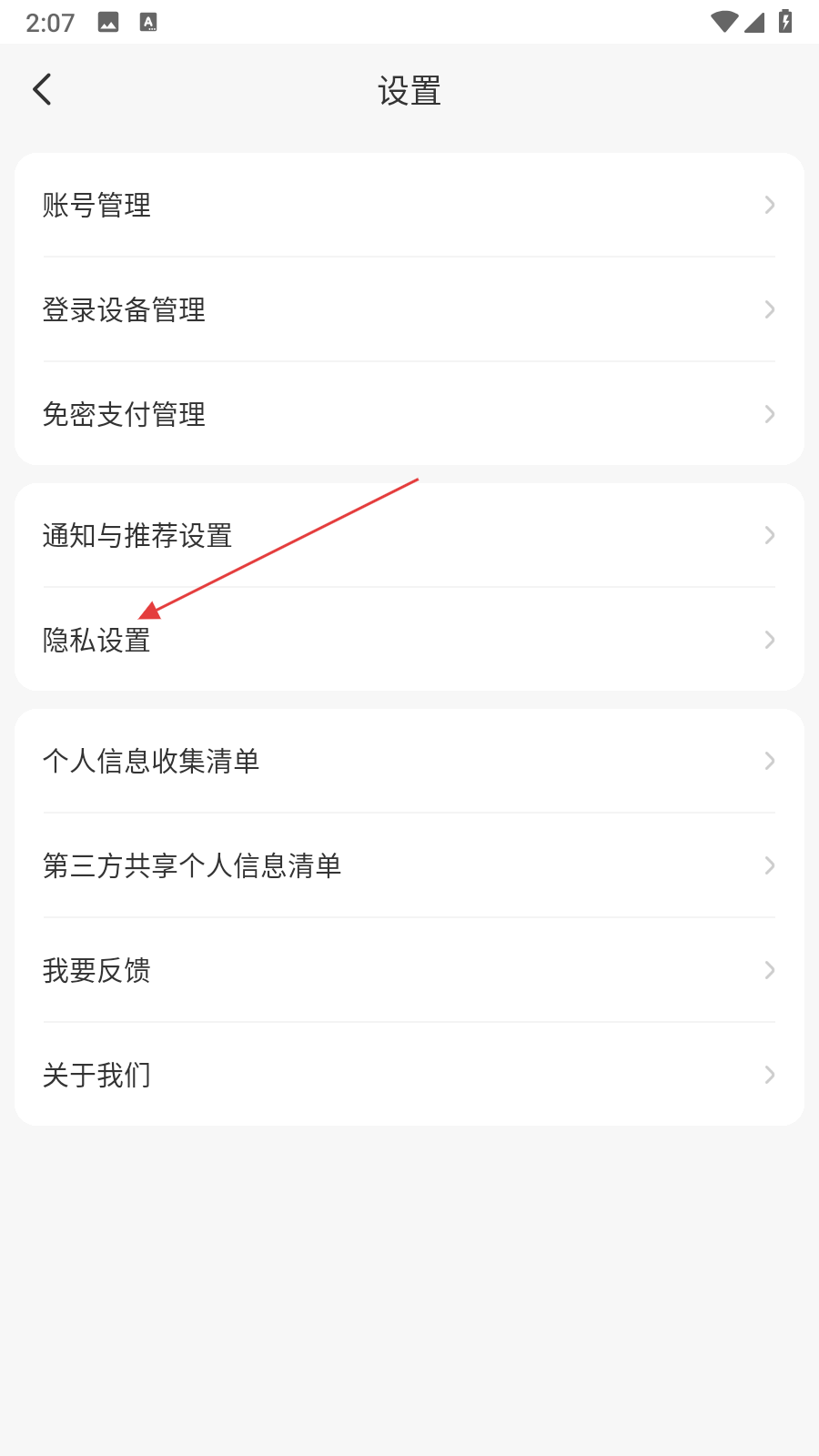 2、在設(shè)置界面中,找到并點(diǎn)擊隱私設(shè)置選項(xiàng)。