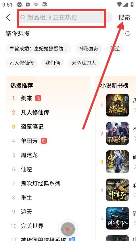 2、輸入想要收藏的小說名稱,點擊搜索按鈕。