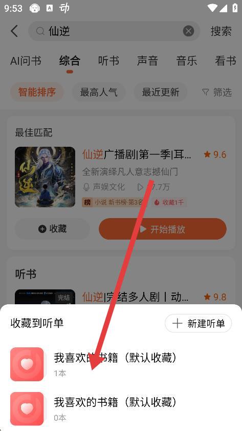 4、選擇想要收藏到的聽單,即可完成收藏操作。