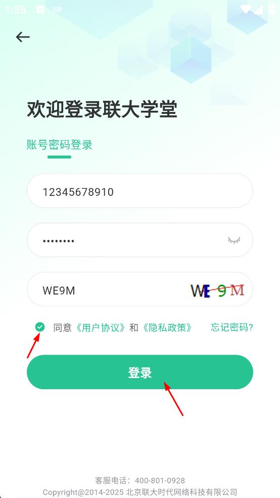 4、勾選同意用戶協(xié)議和隱私政策,然后點擊登錄按鈕。