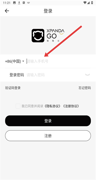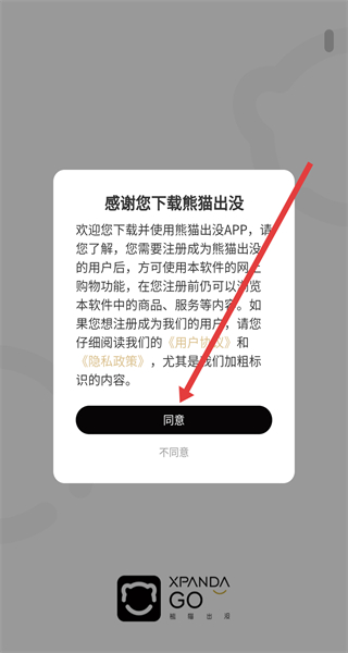 1、點(diǎn)擊“感謝您下載熊貓出沒”彈窗的“同意”,進(jìn)入注冊(cè)登錄界面。