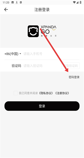 2、在登錄頁面中點(diǎn)擊“密碼登錄”,切換到密碼登錄模式。