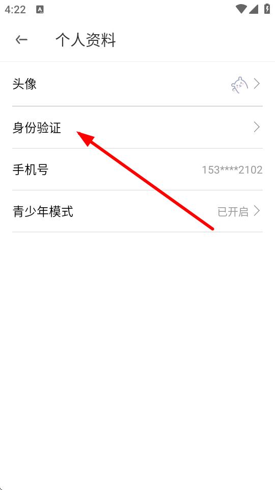 3、在個(gè)人資料頁(yè)面里,點(diǎn)擊身份驗(yàn)證選項(xiàng)。