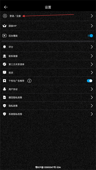 2、進(jìn)入設(shè)置的界面內(nèi),找到并點(diǎn)擊登錄/注冊的功能按鈕。