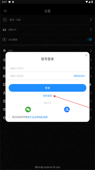 3、當(dāng)頁面彈出賬號登錄的內(nèi)容時(shí),點(diǎn)擊密碼登錄的按鈕。