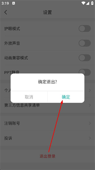 4、在彈出的提示框中,點(diǎn)擊確定即可退出登錄。