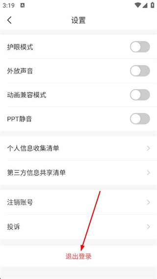 3、進(jìn)入設(shè)置頁(yè)面后,找到并點(diǎn)擊退出登錄選項(xiàng)。