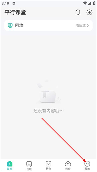 1、打開(kāi)平行課堂app,點(diǎn)擊底部導(dǎo)航欄我的選項(xiàng)。
