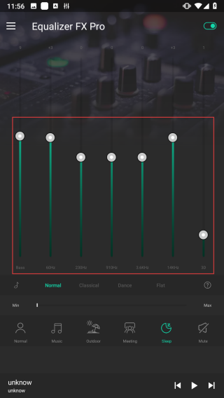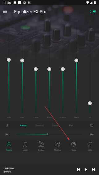 1、打開(kāi)Equalizer FX Pro應(yīng)用,界面底部有點(diǎn)擊Sleep這類(lèi)場(chǎng)景模式。