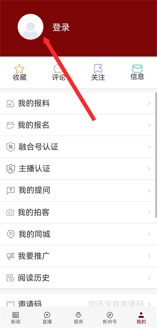 2、在個人的頁面,點擊登錄入口,進入登錄注冊的界面。