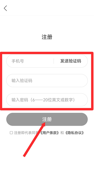 4、在注冊頁面,輸入手機號等信息后點擊注冊,完成賬號注冊操作。