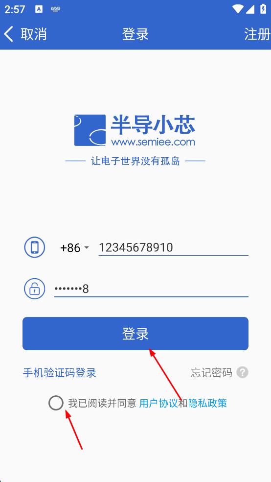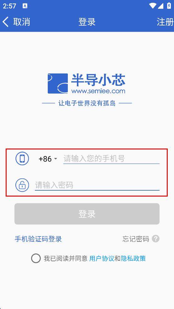 3、在登錄界面,輸入手機(jī)號(hào)和密碼,勾選我已閱讀并同意用戶(hù)協(xié)議和隱私政策。