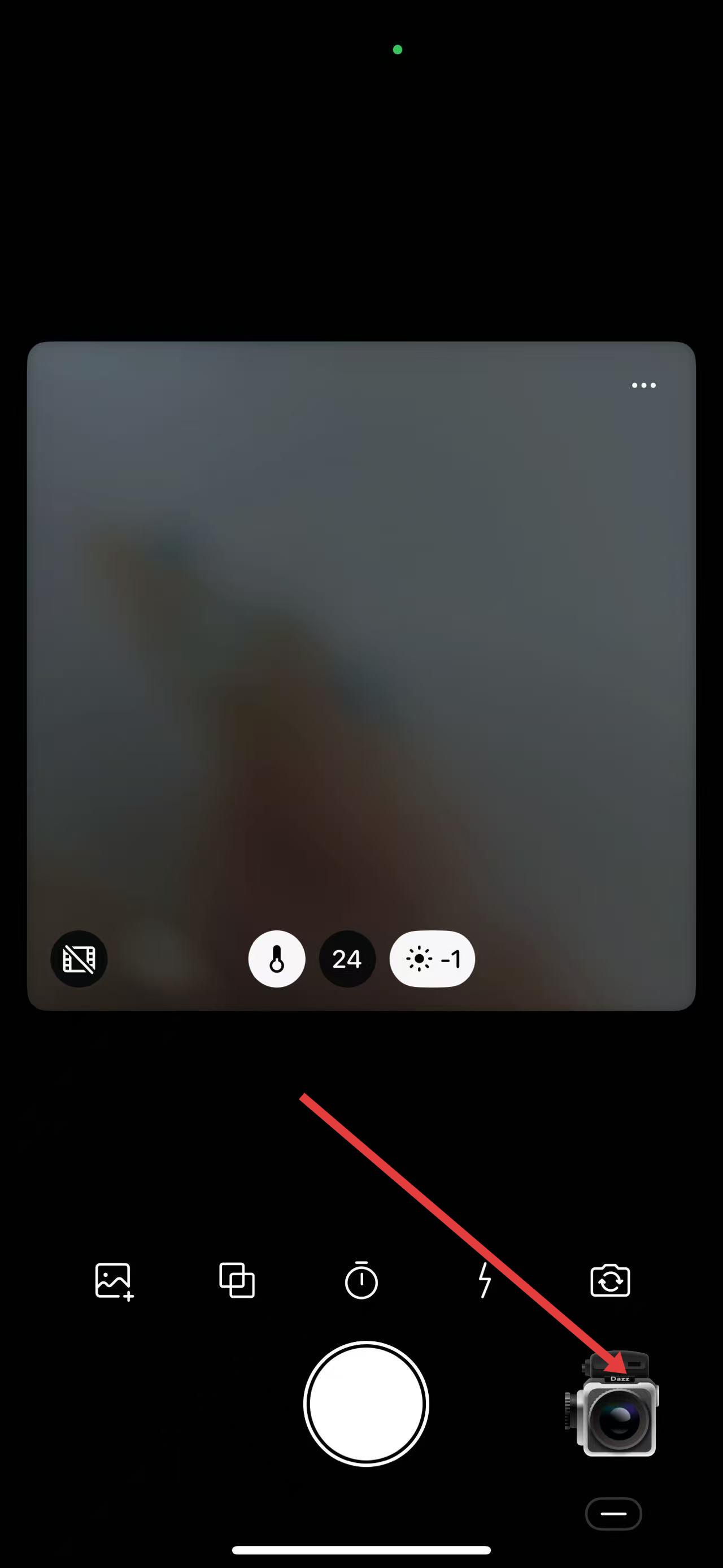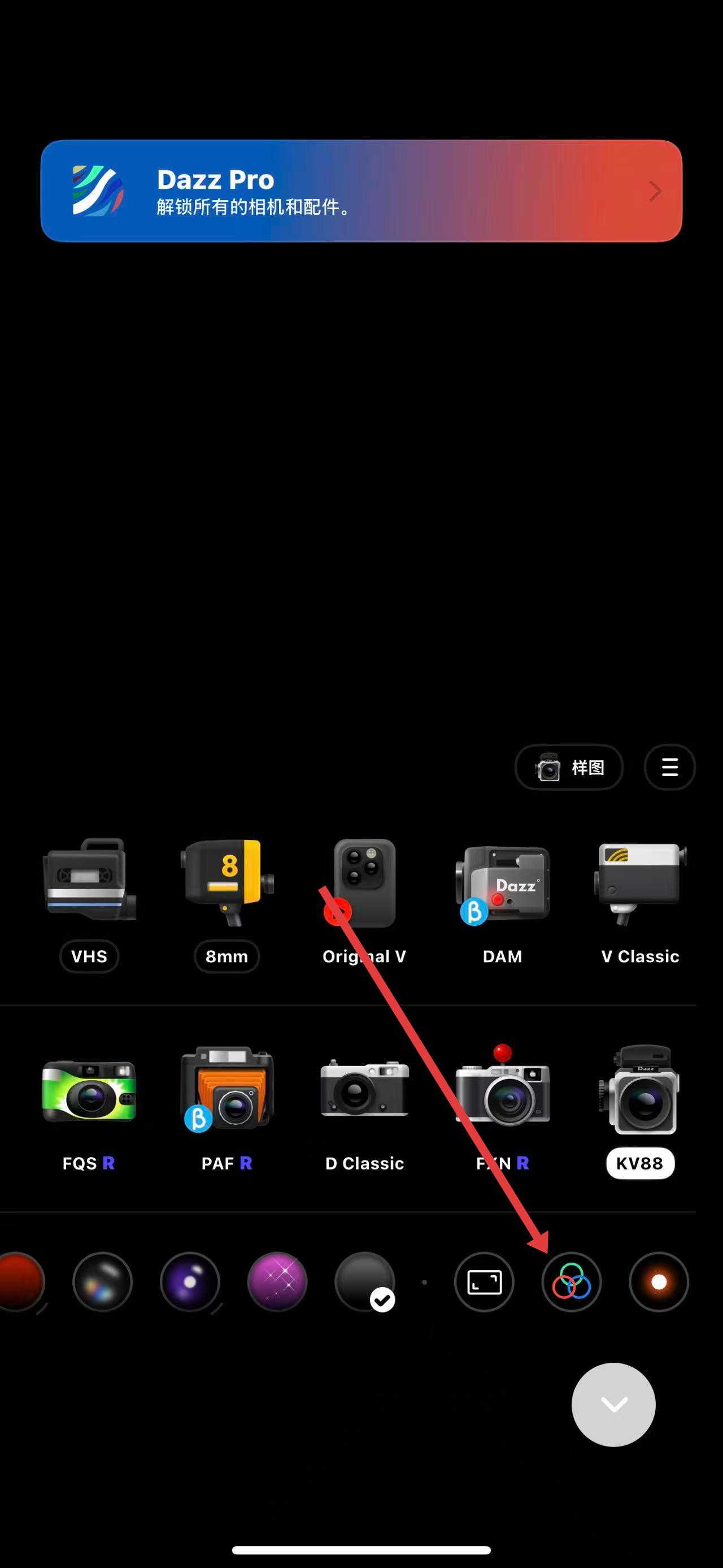 1、打開Dazz相機應(yīng)用,進入拍攝界面。點擊拍攝按鈕右側(cè)的相機圖標,進入相機選擇頁面。