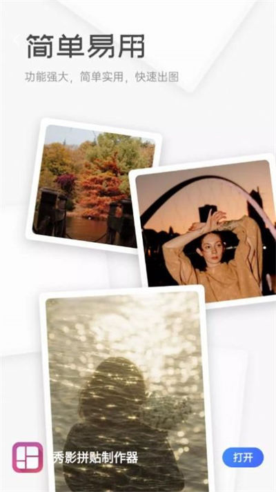 秀影拼貼制作器軟件是一款圖片制作和拼接、修圖的軟件,其中擁有所有主流修圖軟件的功能,不論是各種濾鏡還有一鍵修圖,都可以讓用戶直接省去修圖世界,智能的幫助用戶生成好看的照片,修飾我們的照片,擁有高度效率的使用過程。