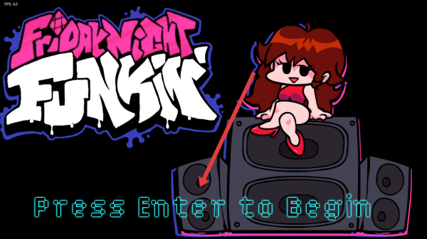 1、在Friday-Night-Funkin啟動界面,按下Enter鍵,進(jìn)入游戲主菜單,開啟音樂節(jié)奏挑戰(zhàn)之旅。