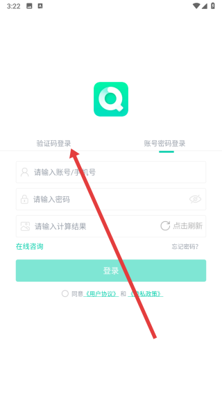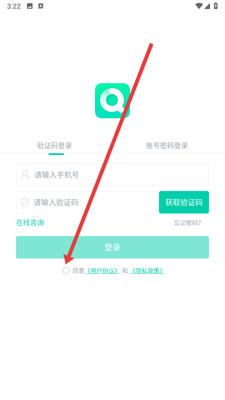 2、在切換到驗證碼登錄界面,在登錄前需先點擊勾選同意按鈕。