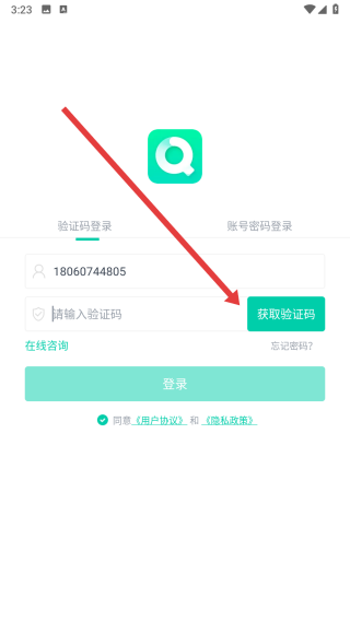 4、在填寫好手機(jī)號后,通過點擊獲取驗證碼按鈕,等待一段時間后輸入驗證碼即可完成登錄。