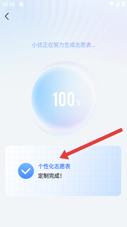 4、當頁面提示個性化志愿表定制完成,代表志愿表已成功生成,可進行后續(xù)查看或調(diào)整。